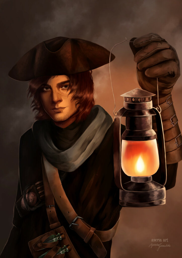 Kapitan załogi Cieni, znany jako Kapitan Cieni albo po prostu Cień. Gość, który ma więcej pseudonimów niż pieniędzy, a jak widać pseudonimy też dość marne. Złodziej, korsarz, przemytnik i idealny kompan – zarówno do kufla, jak i do bójki. Potajemnie pracował dla piratów, spłacając długi pozostawione przez ojca, choć w duszy od zawsze bliżej mu było do gwardzisty. Blizna na twarzy przypomina mu tragedię, w której stracił matkę i brata – o co długo siebie obwiniał. Kiedyś należał do elity miasta; jako syn lekarza zna się na medycynie i truciznach, stąd fiolki przy pasie, które zawsze przy sobie nosi.